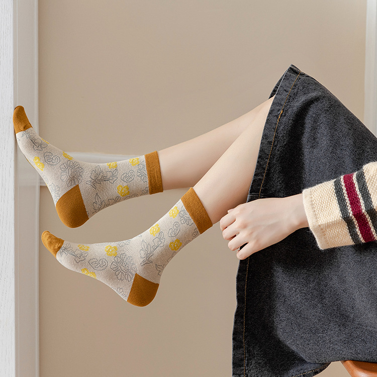 Elevate your style with our Women's Fashionable and Versatile Retro Mid-calf Socks. Crafted from premium cotton, these socks are not only a fashion statement but also a comfortable addition to your wardrobe. The jacquard features add a touch of elegance that seamlessly blends with any outfit, making them perfect for both casual and formal occasions.